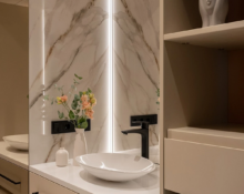 Style comes down to the details, which can also play a practical role. For example, in the cooking area, it’s.